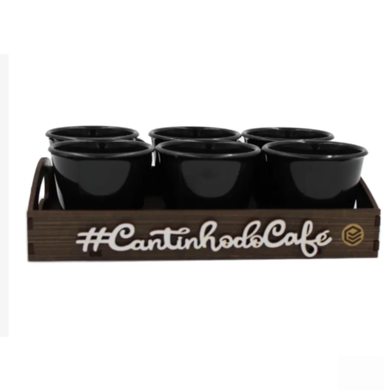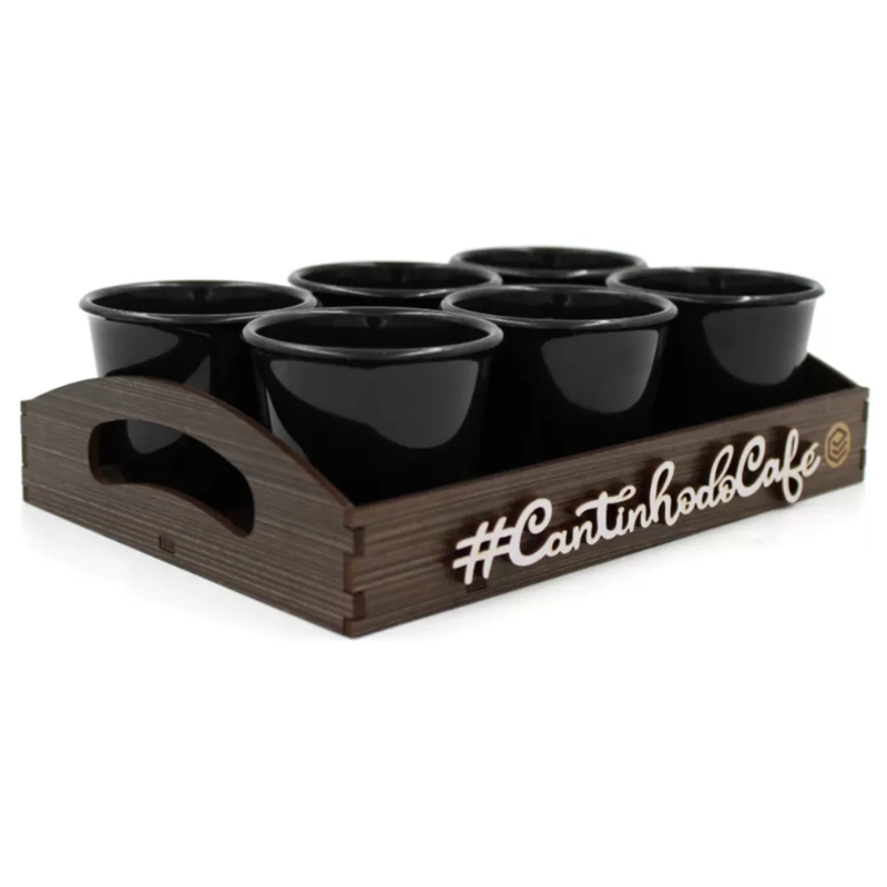 129 BANDEJA MINI COM 6 XICARAS – PRETO 20X14X4,5