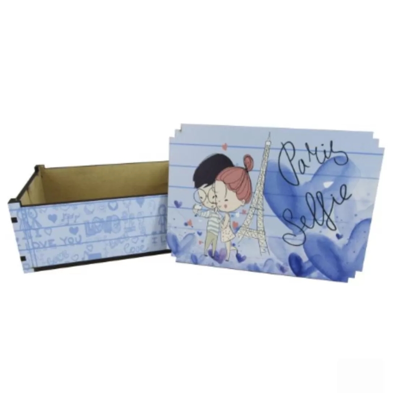 CAIXA ADESIVADA 23X17X9CM PARIS SELFIE AZUL