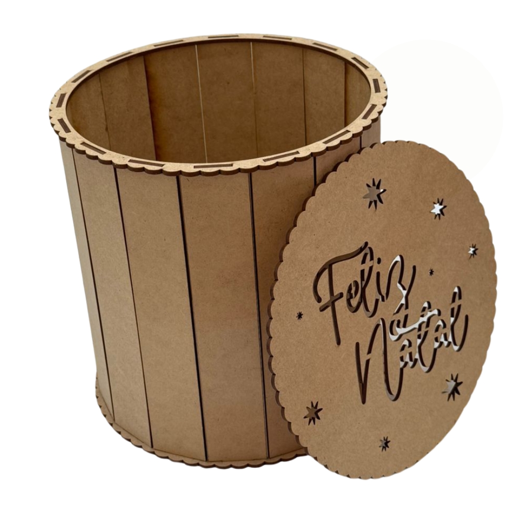 Caixa Panetone Redondo a Laser Feliz Natal