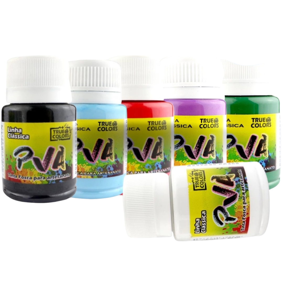 A True Colors traz a mais completa linha de tinta PVA Fosca para artesanato do mercado. São cores em degradê que se complementam para tornar seu trabalho maravilhoso. Todas as cores são miscíveis entre si, obtendo-se infinitas tonalidades secundárias. Ideal para pintura sobre madeira, MDF, gesso, cerâmica, EPS, vidro, PET etc.