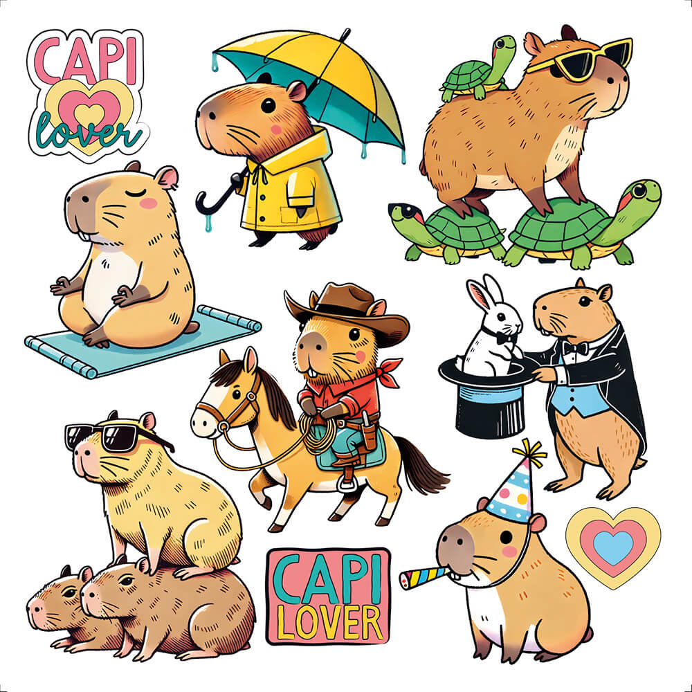 TTQ4-052 – Transfer Têxtil Quadrado Festa das Capivaras 13,5×13,5cm