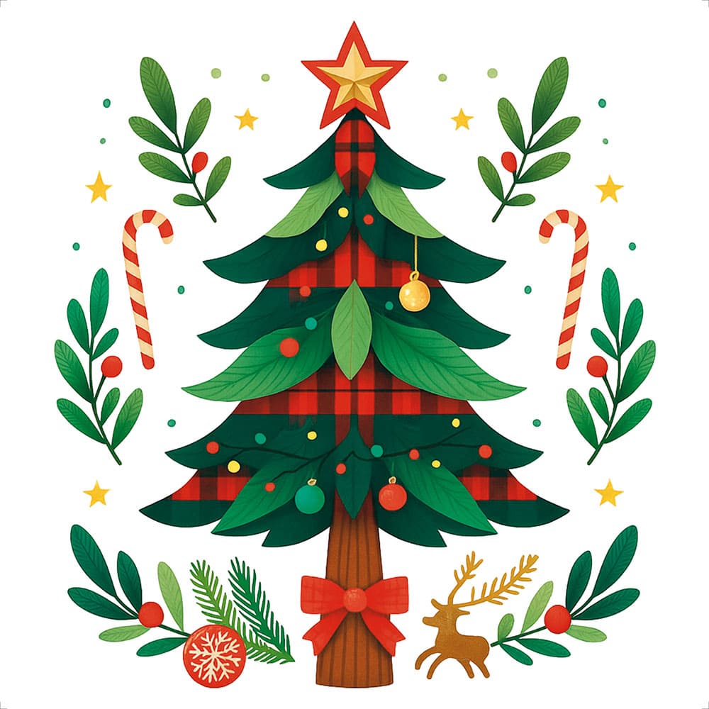 TTQ4N-002 – Transfer Têxtil Quadrado Natal – Árvore Natalina 13,5×13,5cm